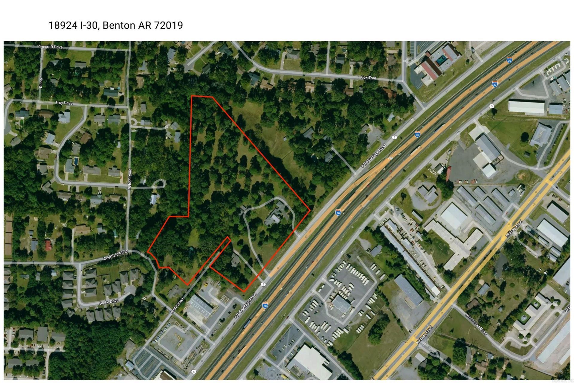 Prime commercial opportunity in one of Benton???s fastest-growing corridors. This +/-12.38 acre tract at 18924 I-30 offers excellent visibility and access just off Exit 118, making it ideal for a wide range of commercial uses. Zoned C-3, the property allows for high-intensity development including retail, service, restaurant, and outdoor display uses with no maximum building size. The site???s proximity to Interstate 30 provides strong traffic exposure and easy connectivity to Benton, Bryant, and the greater Little Rock market. With continued growth along this corridor and increasing demand for commercial development, this property is well-positioned for investors, developers, or end users looking to capitalize on a high-traffic location.